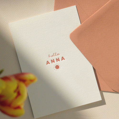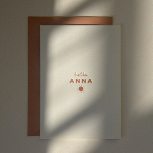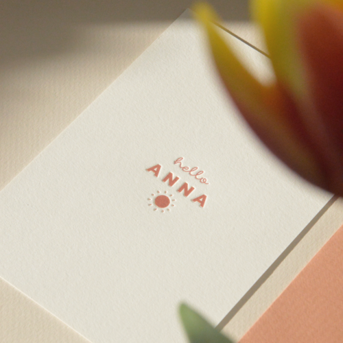 Faire-part super minimaliste avec le détail qui fait la différence : le Letterpress, qui donne le relief au prénom.