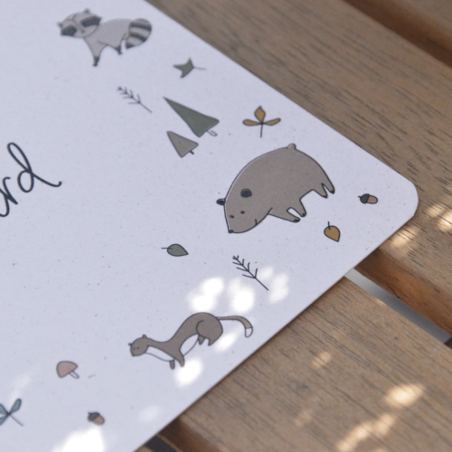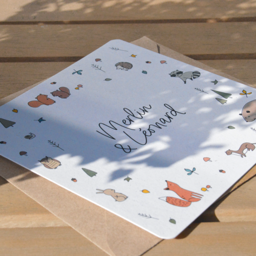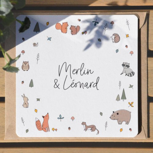 Justine désirait un thème ‘animaux de la forêt’, avec de jolies teintes en accord avec la chambre des twins.