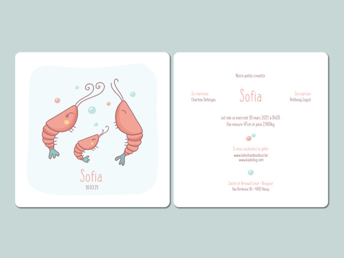 C’est donc tout naturellement que leur est venu l’idée d’une famille crevette pour leur faire-part.